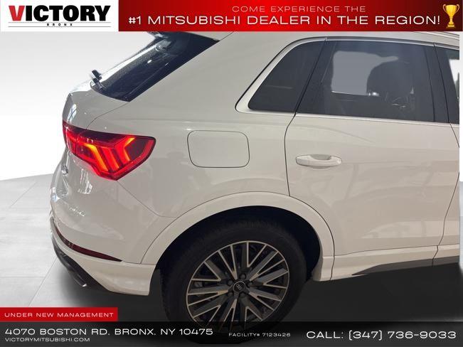 2022 Audi Q3 Premium S Line quattro White 4D Sport Utility Save yourself Time and Money - Fill out a credit application online at victorymitsubishi.com and get pre-APPROVED! Financing available for all types of credit with low monthly payment that will fit you budget. Down Payment low as $599. Same day delivery. View our entire inventory by visiting our virtual showroom at victorymitsubishi.com - Only 2 blocks away from Exit 13 off I-95 or Minutes from exit 7 on the Hutchinson Parkway. While we make every effort to ensure the data listed here is correct, there may be instances where the pricing, options or vehicle features may be listed incorrectly. Dealer cannot be held liable for data that is listed incorrectly. Visit Victory Mitsubishi online at victorymitsubishi.com to see more pictures of this vehicle or call us at 718-515-4600 today to schedule your test drive. We will honor all cash prices from CarGurus customers. please refer to dealer’s website for exact pricing and for any incentives that we may apply! Our address is 4070 Boston Road, Bronx, NY 10475.