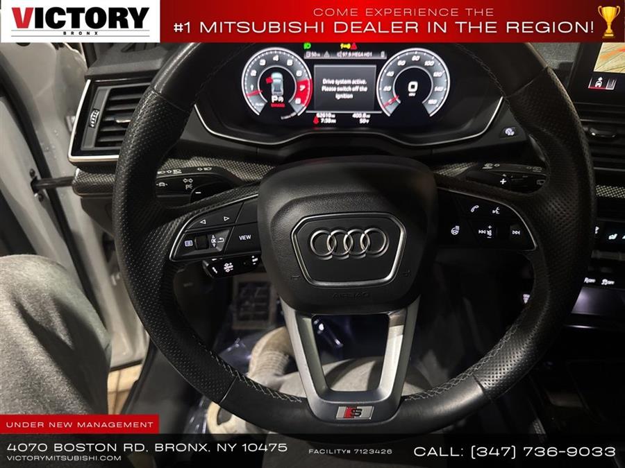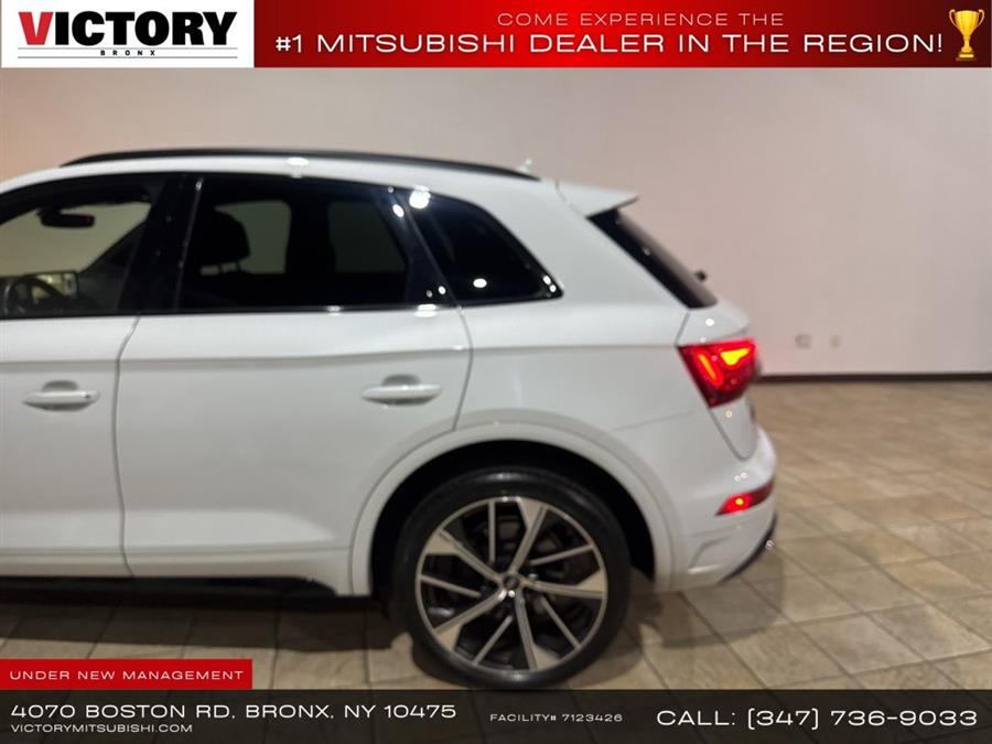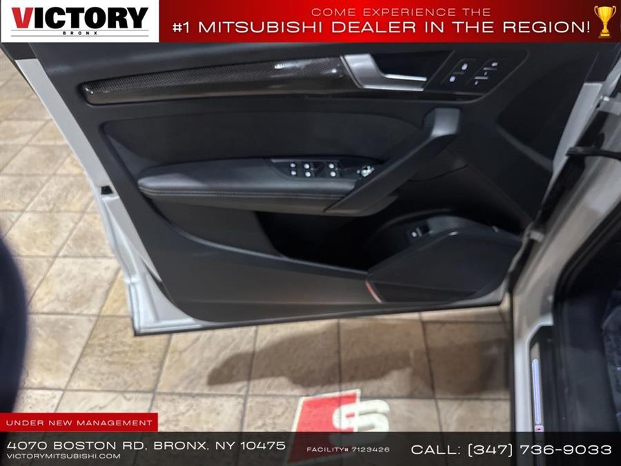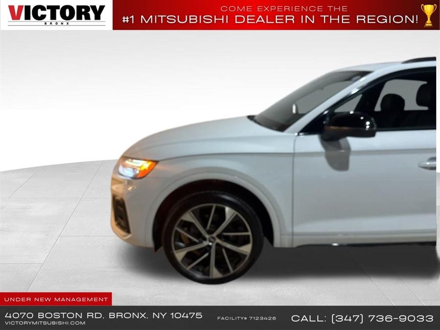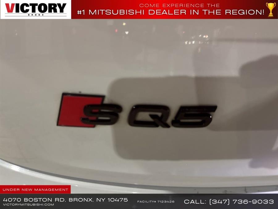Welcome to Victory Mitsubishi! We offer a combined inventory of 700 cars new and luxury used vehicles. All Used vehicles come with a quality assurance inspection, our New Vehicles have an unprecedented 10-year 100k mile warranty we also have vehicles car for any want or purpose. Come into test drive this car for any want or purpose. Come in to test drive this Audi SQ5 Premium Plus today! Priced below KBB Fair Purchase Price! .CARFAX One-Owner.2022 Audi SQ5 Premium Plus quattro Glacier White 4D Sport Utility Save yourself Time and Money - Fill out a credit application online at victorymitsubishi.com and get pre-APPROVED! Financing available for all types of credit with low monthly payment that will fit you budget. Down Payment low as $599. Same day delivery. View our entire inventory by visiting our virtual showroom at victorymitsubishi.com - Only 2 blocks away from Exit 13 off I-95 or Minutes from exit 7 on the Hutchinson Parkway. While we make every effort to ensure the data listed here is correct, there may be instances where the pricing, options or vehicle features may be listed incorrectly. Dealer cannot be held liable for data that is listed incorrectly. Visit Victory Mitsubishi online at victorymitsubishi.com to see more pictures of this vehicle or call us at 718-515-4600 today to schedule your test drive. We will honor all cash prices from CarGurus customers. please refer to dealer,s website for exact pricing and for any incentives that we may apply! Our address is 4070 Boston Road, Bronx, NY 10475. ............