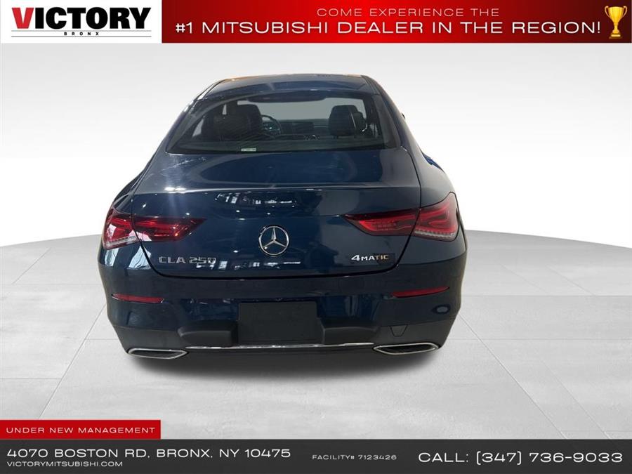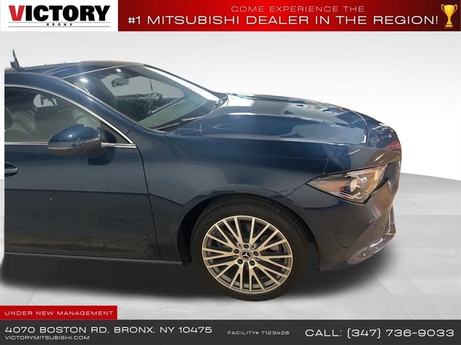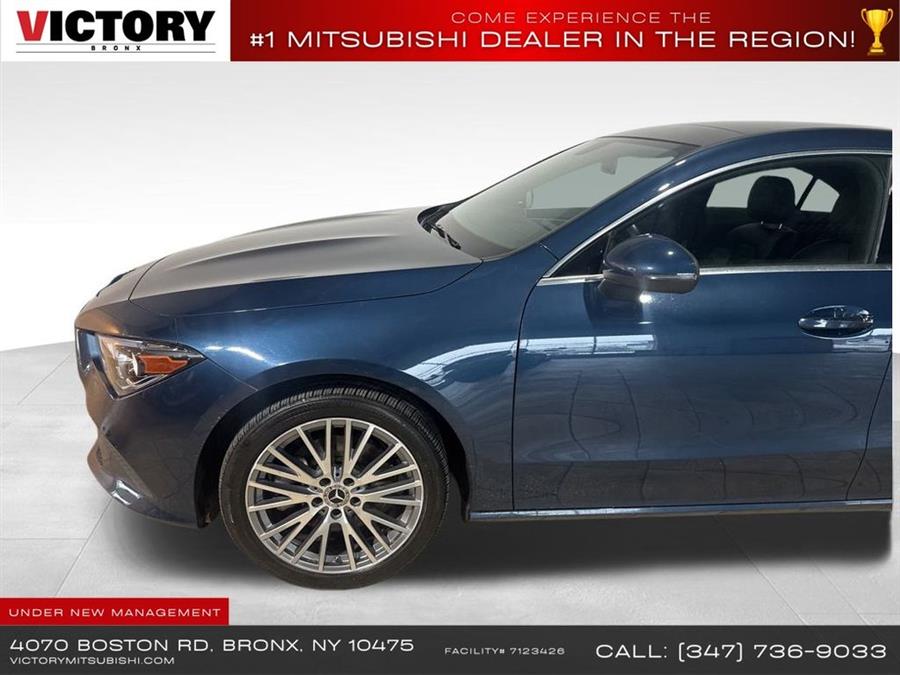 Welcome to Victory Mitsubishi! We offer a combined inventory of 700 cars new and luxury used vehicles. All Used vehicles come with a quality assurance inspection, our New Vehicles have an unprecedented 10-year 100k mile warranty we also have vehicles car for any want or purpose. Come into test drive this car for any want or purpose. Come in to test drive this Mercedes-Benz CLA CLA 250 today! Priced below KBB Fair Purchase Price! .CARFAX One-Owner.2022 Mercedes-Benz CLA CLA 250 4MATIC Blue 4D Sedan Save yourself Time and Money - Fill out a credit application online at victorymitsubishi.com and get pre-APPROVED! Financing available for all types of credit with low monthly payment that will fit you budget. Down Payment low as $599. Same day delivery. View our entire inventory by visiting our virtual showroom at victorymitsubishi.com - Only 2 blocks away from Exit 13 off I-95 or Minutes from exit 7 on the Hutchinson Parkway. While we make every effort to ensure the data listed here is correct, there may be instances where the pricing, options or vehicle features may be listed incorrectly. Dealer cannot be held liable for data that is listed incorrectly. Visit Victory Mitsubishi online at victorymitsubishi.com to see more pictures of this vehicle or call us at 718-515-4600 today to schedule your test drive. We will honor all cash prices from CarGurus customers. please refer to dealer,s website for exact pricing and for any incentives that we may apply! Our address is 4070 Boston Road, Bronx, NY 10475. ............