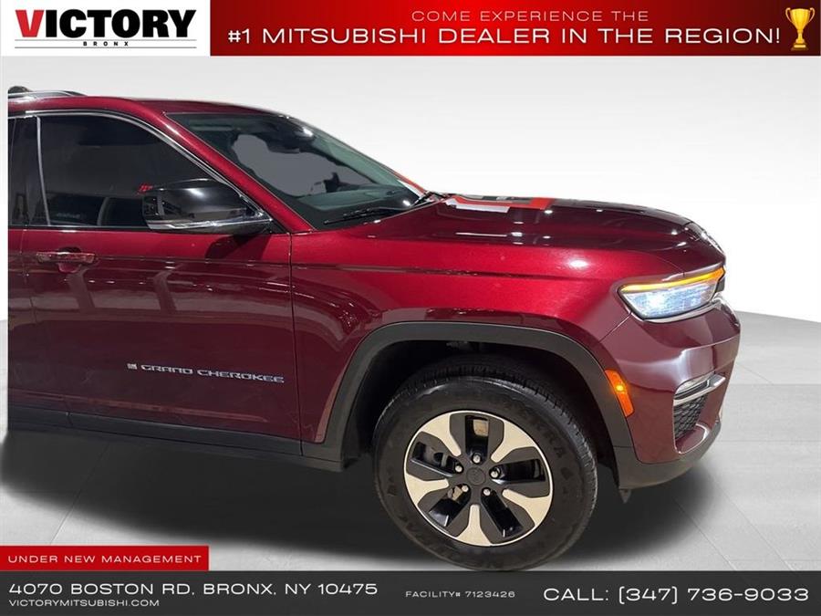 Welcome to Victory Mitsubishi! We offer a combined inventory of 700 cars new and luxury used vehicles. All Used vehicles come with a quality assurance inspection, our New Vehicles have an unprecedented 10-year 100k mile warranty we also have vehicles car for any want or purpose. Come into test drive this car for any want or purpose. Come in to test drive this Jeep Grand Cherokee 4xe today! Priced below KBB Fair Purchase Price! .2023 Jeep Grand Cherokee 4xe Velvet Red Pearlcoat 4D Sport Utility Save yourself Time and Money - Fill out a credit application online at victorymitsubishi.com and get pre-APPROVED! Financing available for all types of credit with low monthly payment that will fit you budget. Down Payment low as $599. Same day delivery. View our entire inventory by visiting our virtual showroom at victorymitsubishi.com - Only 2 blocks away from Exit 13 off I-95 or Minutes from exit 7 on the Hutchinson Parkway. While we make every effort to ensure the data listed here is correct, there may be instances where the pricing, options or vehicle features may be listed incorrectly. Dealer cannot be held liable for data that is listed incorrectly. Visit Victory Mitsubishi online at victorymitsubishi.com to see more pictures of this vehicle or call us at 718-515-4600 today to schedule your test drive. We will honor all cash prices from CarGurus customers. please refer to dealer,s website for exact pricing and for any incentives that we may apply! Our address is 4070 Boston Road, Bronx, NY 10475. ............