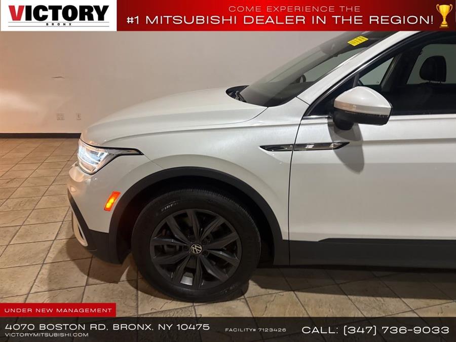 Welcome to Victory Mitsubishi! We offer a combined inventory of 700 cars new and luxury used vehicles. All Used vehicles come with a quality assurance inspection, our New Vehicles have an unprecedented 10-year 100k mile warranty we also have vehicles car for any want or purpose. Come into test drive this car for any want or purpose. Come in to test drive this Volkswagen Tiguan 2.0T SE today! Priced below KBB Fair Purchase Price! .Clean CARFAX.2023 Volkswagen Tiguan 2.0T SE White 4D Sport Utility Save yourself Time and Money - Fill out a credit application online at victorymitsubishi.com and get pre-APPROVED! Financing available for all types of credit with low monthly payment that will fit you budget. Down Payment low as $599. Same day delivery. View our entire inventory by visiting our virtual showroom at victorymitsubishi.com - Only 2 blocks away from Exit 13 off I-95 or Minutes from exit 7 on the Hutchinson Parkway. While we make every effort to ensure the data listed here is correct, there may be instances where the pricing, options or vehicle features may be listed incorrectly. Dealer cannot be held liable for data that is listed incorrectly. Visit Victory Mitsubishi online at victorymitsubishi.com to see more pictures of this vehicle or call us at 718-515-4600 today to schedule your test drive. We will honor all cash prices from CarGurus customers. please refer to dealer,s website for exact pricing and for any incentives that we may apply! Our address is 4070 Boston Road, Bronx, NY 10475. ............