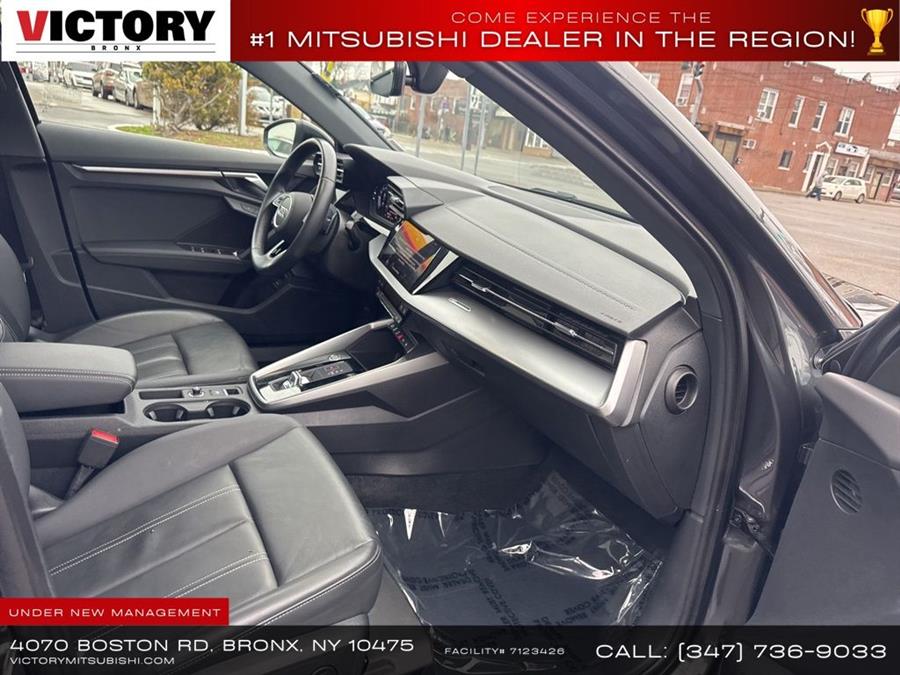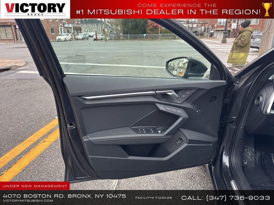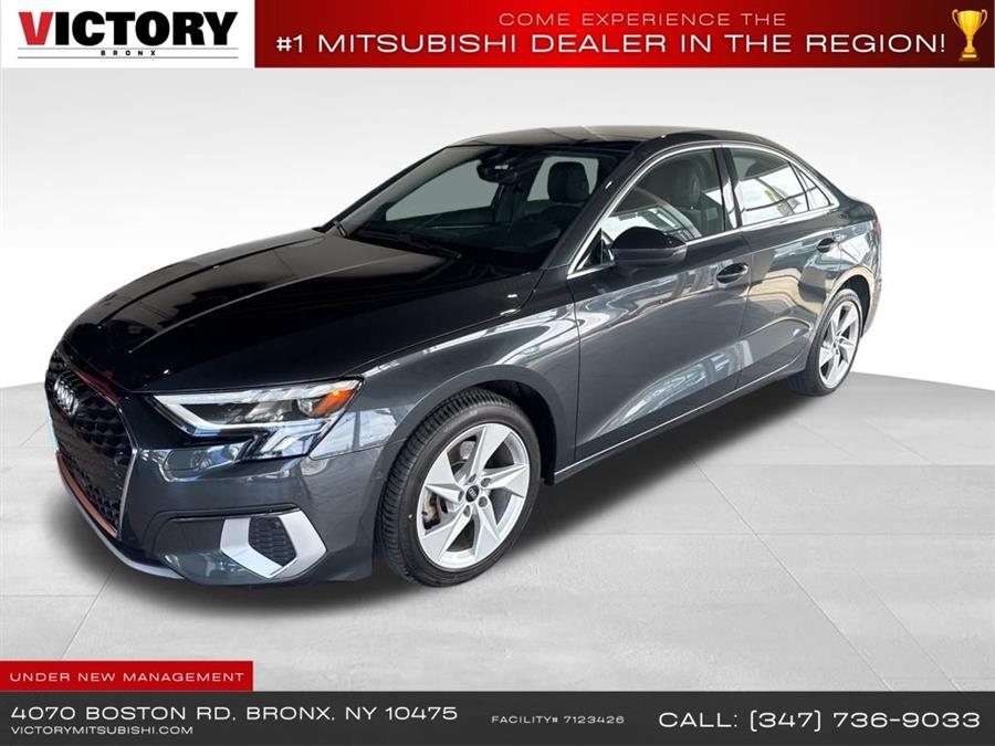 2024 Audi A3 FrontTrak 4D Sedan Save yourself Time and Money - Fill out a credit application online at victorymitsubishi.com and get pre-APPROVED! Financing available for all types of credit with low monthly payment that will fit you budget. Down Payment low as $599. Same day delivery. View our entire inventory by visiting our virtual showroom at victorymitsubishi.com - Only 2 blocks away from Exit 13 off I-95 or Minutes from exit 7 on the Hutchinson Parkway. While we make every effort to ensure the data listed here is correct, there may be instances where the pricing, options or vehicle features may be listed incorrectly. Dealer cannot be held liable for data that is listed incorrectly. Visit Victory Mitsubishi online at victorymitsubishi.com to see more pictures of this vehicle or call us at 718-515-4600 today to schedule your test drive. We will honor all cash prices from CarGurus customers. please refer to dealer’s website for exact pricing and for any incentives that we may apply! Our address is 4070 Boston Road, Bronx, NY 10475.
